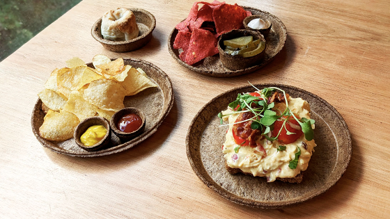 Hechos en base a productos alimenticios y naturales, como cascarilla de café y cáscara de papas.